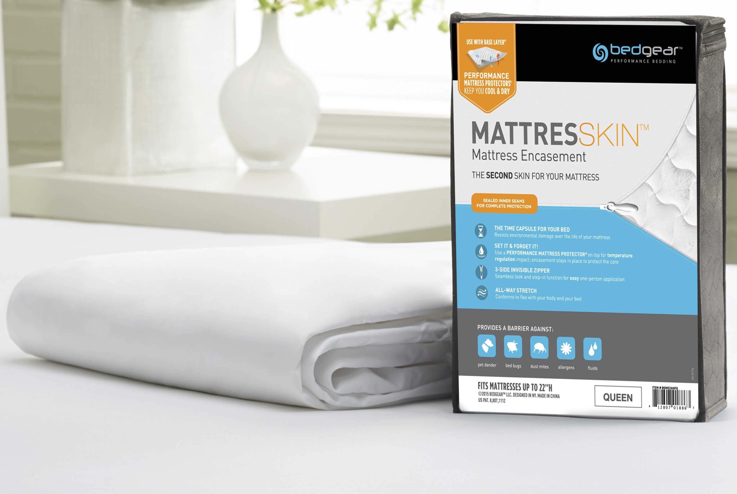 The MattresSkin™ Mattress Encasement is the second skin for your mattress. The mattress encasement fully wraps around your mattress with a tight invisible zipper and sealed inner seams for complete protection. Use a performance mattress protector on top for temperature regulation and as a removable & washable solution for PERFORMANCE every day.Read More