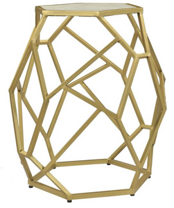 With a look that goes all the way around, this hexagonal Accent Table takes shape and form to a whole new level! The openwork base is coated in a soft gold powder coating to perfectly compliment the white marble top, a beautiful combination.Read More