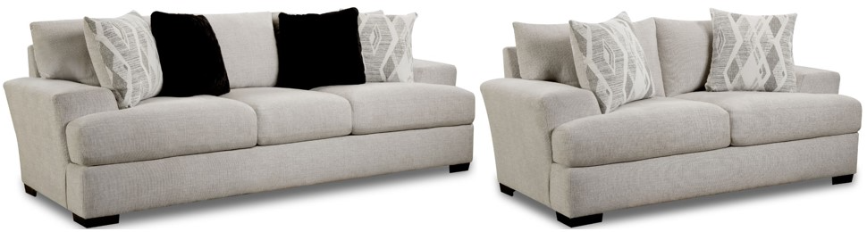 Get ready for some serious comfort and relaxation! This 2-piece collection features a sofa and loveseat that creates plenty of space for everyone in the family. The modern design includes oversized flared arms, reversible cushions, and throw pillows that have a contemporary spin on the traditional argyle fabric pattern.Read More