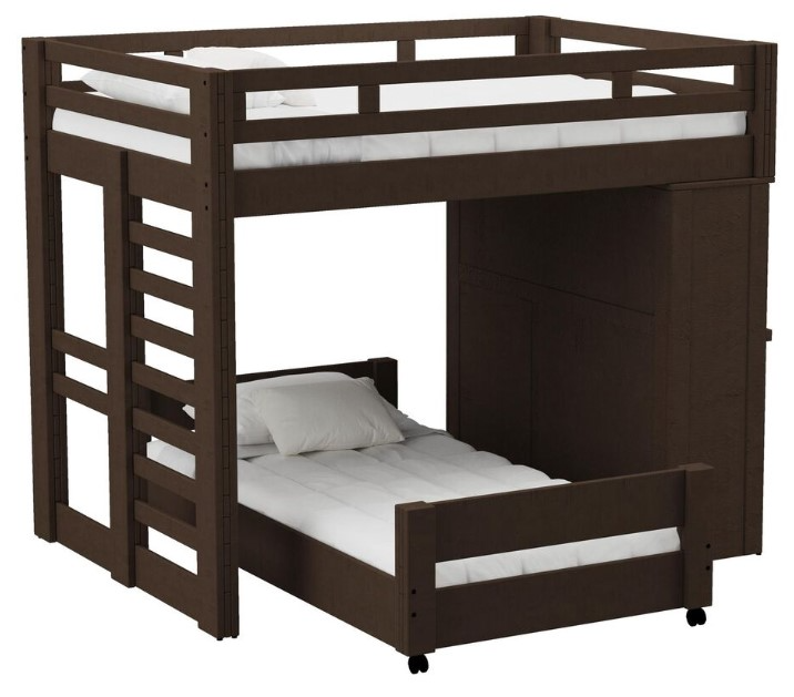 The Cali Kids Collection loft bed is a stylish and functional furniture piece designed to enhance the aesthetic appeal of any child's bedroom. Its contemporary design, coupled with a sophisticated brown finish, creates a modern and versatile look that can seamlessly integrate into various bedroom styles.Read More