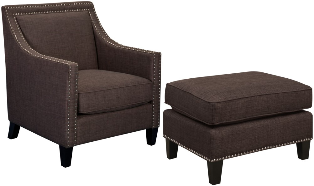 The Erica Chair & Ottoman boasts a refreshing combination of contemporary design with a touch of vintage flare. This chair and ottoman are adorned with chic nail head trim and dressed in a fashionable chocolate fabric upholstery.Read More