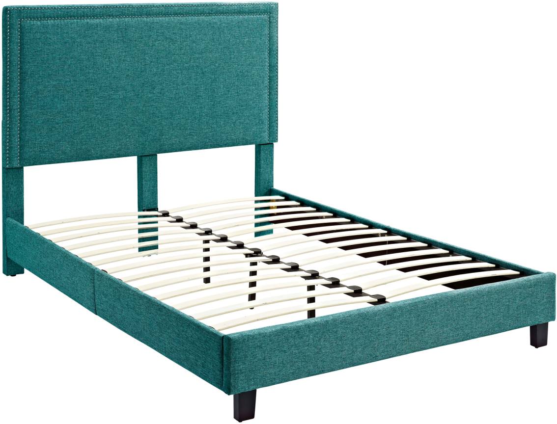 The Erica Upholstered Queen Platform Bed will instantly give your bedroom the update youve been craving! This stylish upholstered bed features chrome nail head trim along the headboard. No box spring required here, thanks to the euro slats!Read More