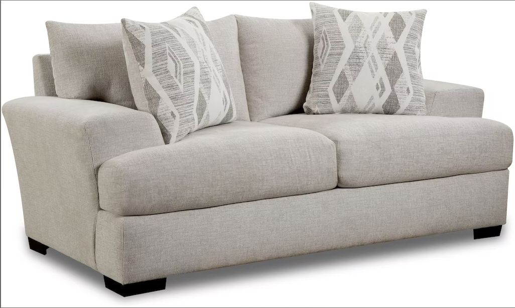 Get ready for some serious comfort and relaxation! This made in America loveseat is sure to create the perfect lounging spot. The modern design includes oversized flared arms, reversible cushions, and throw pillows that have a contemporary spin on the traditional argyle fabric pattern. Supported by durable construction of a solid wood frame and expertise craftsmanship, this loveseat is sure to last!Read More