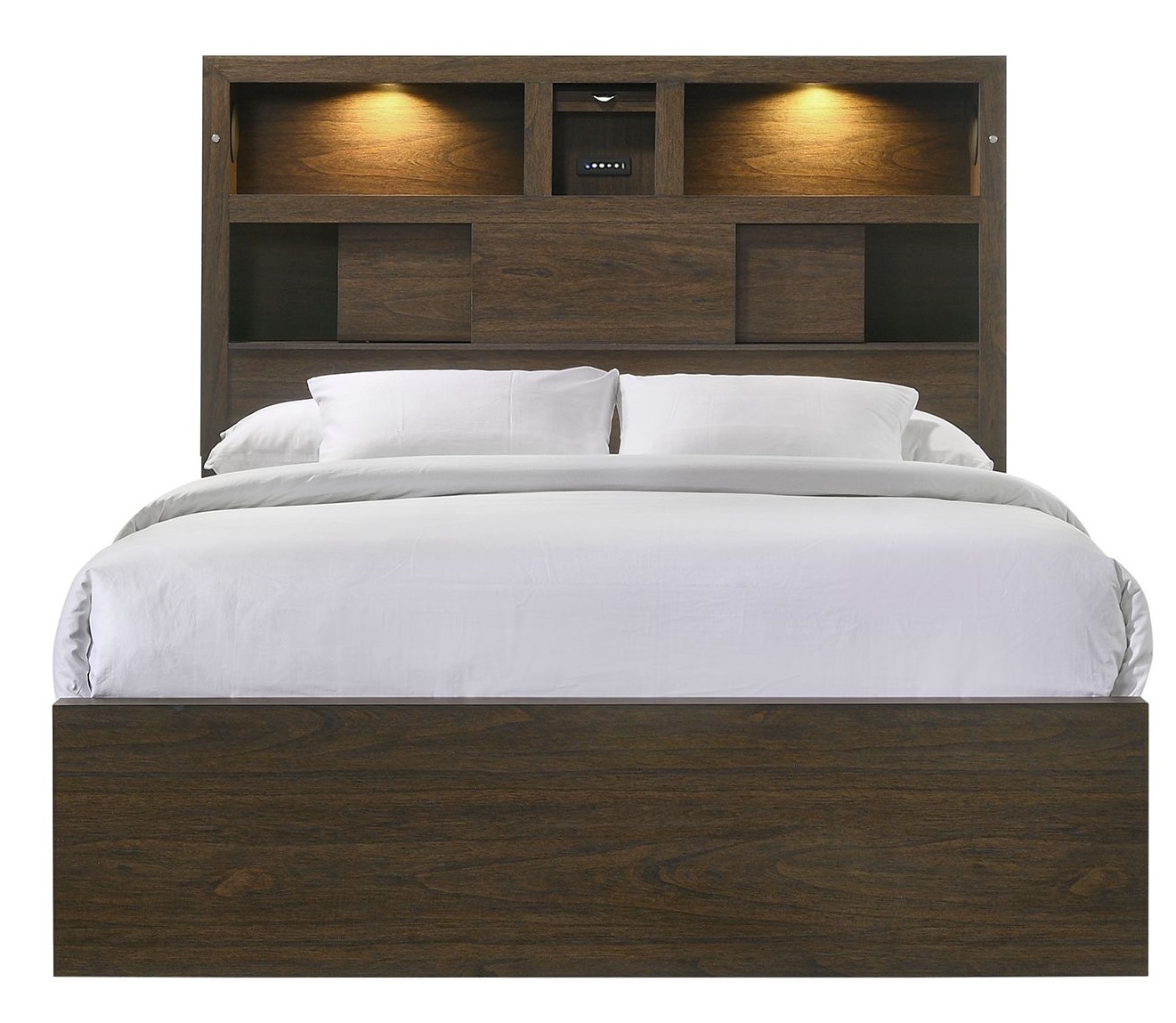 There is also touch, mood lighting in the headboard to provide enough light to wind down at the end of the day. Roll top and sliding doors easily keep anything out of sight that you don't want seen. The natural wood knots and wood grain design on the surface pair beautifully with this walnut finish. Add this awesome bed to your home today, not only for it's sleek look, but also for it's functionality!