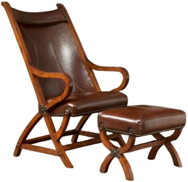 Materials: Bi-Cast Leather; Rubberwood; Antique Brass Nails; Foam