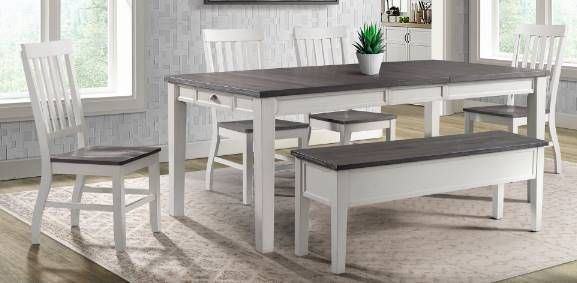 Kayla 6-Piece Dining Set is the missing piece to your home! This set includes a table, four side chairs, and a storage bench. This table comes with a 16" extension leaf to easily accommodate any last minute guests.Read More