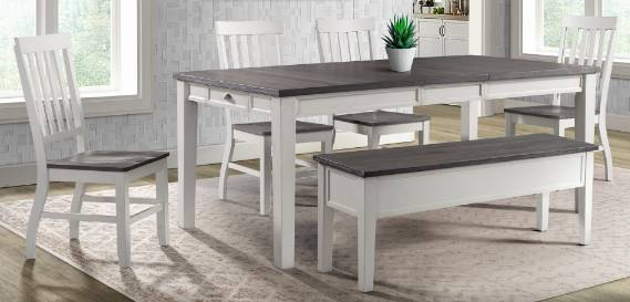 Need a little extra storage space? No problem here, this table comes with a drawer on each end of the table. The chairs comes with a wooden seat and a slat back, perfecting that cottage chic style. The wire brush, gray finish is featured on the table top and on the seats, while the transitional white covers the bases and back of chairs. If you're in need of extra storage space, the bench comes with a lift-top storage option so you can easily store away some additional belongings. Add this set to your home to perfect the cottage chic style!