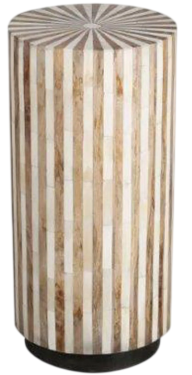 This round chairside accent table offers a youthful, slightly Boho vibe. Organic yet refined, this 11 inch diameter table is made from mango wood and bone inlay in a beautiful radial pattern.Read More