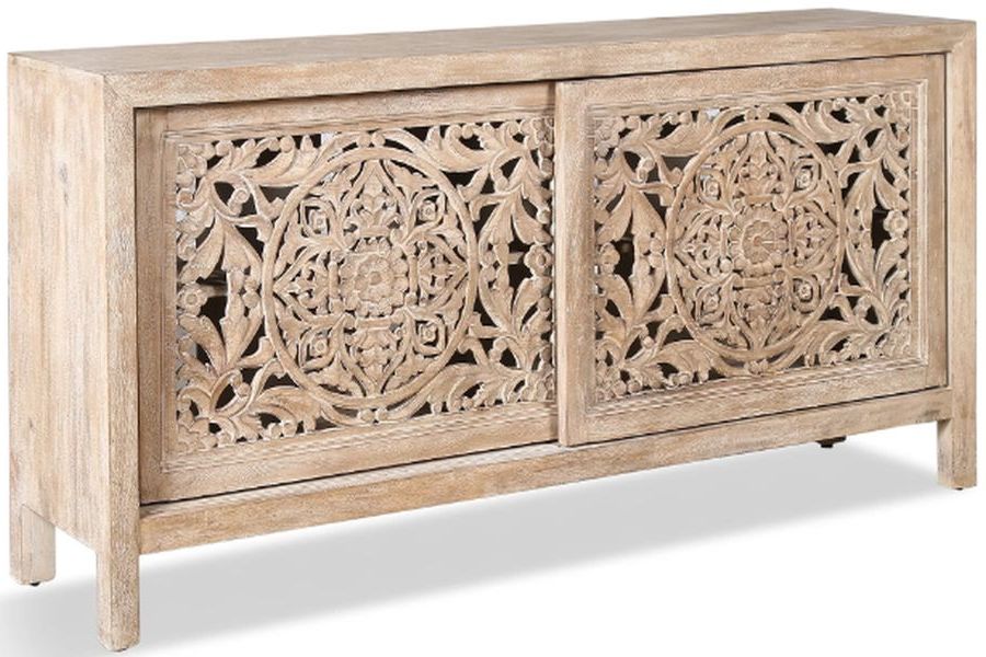 This gorgeous media console from the Crossings Eden's collection offers a beautiful look. Featuring floor levelers, cord management, removable interior shelves, and hand carved motif sliding doors.Read More