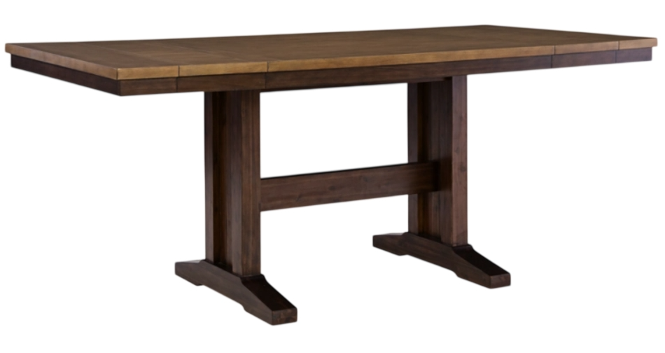 Add a dash of enduring design to your home with this counter height dining extension table. Its two-tone finish contrasts light and dark chestnut finishes for a touch of casual rustic charm that’s both current and timeless.Read More